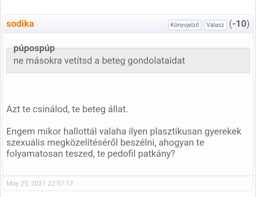 Ez a rohadt pedofil véglény hogy a kurva anyjában van még szabadlábon? Naponta követem a munkásságát, és mindig azt hiszem, hogy na ezt tényleg nem lehet megúszni, és basszameg de.