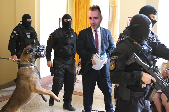 KEF vádlott érkezik a bírósági tárgyalására - 2025. május 20. (utólag színezett):