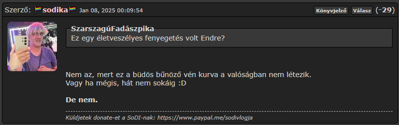Az mondjuk remek! Remélhetöleg elterjed bent, hogy a fajzatokra bukik, vagyis buzi. May 14, 2025 11:13:31