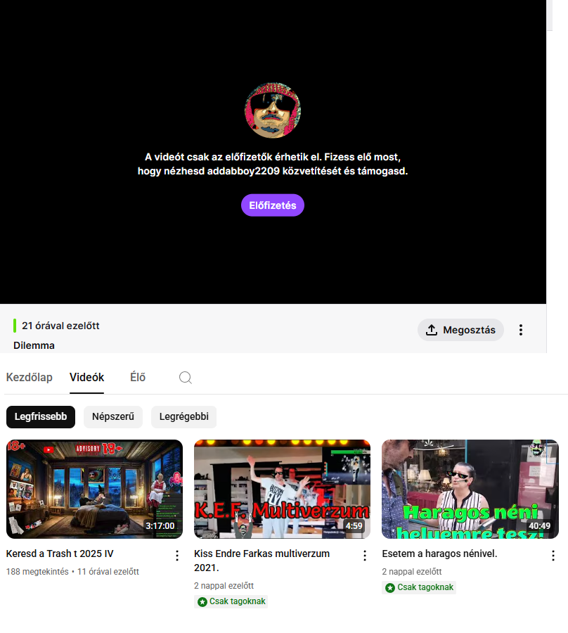 Pár hete kitalálta, hogy a streamelésből fog megélni. Azóta mindenhova beállított tagságot, youtube-on van superchat, saját maga által készített sodis társasjátékokat tervez játszatni pénzért (csak tagok játszhatnak majd, a többiek csak nézhetik), stb.