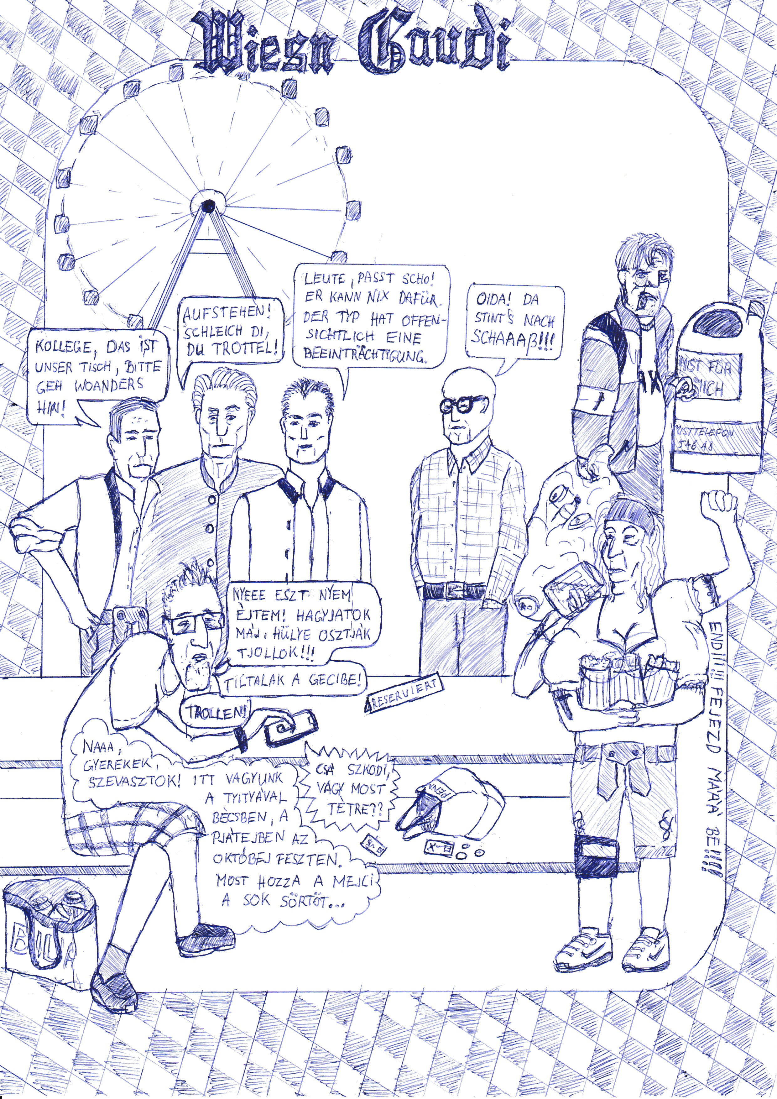 Nyakunkon az október, így a rajzot az Oktoberfest ihlette, ahol a Gyagyás most biztosan szívesen szlapálná a finom sörtöt, de mivel börtönben van, ezért neki ezt sem lehet.