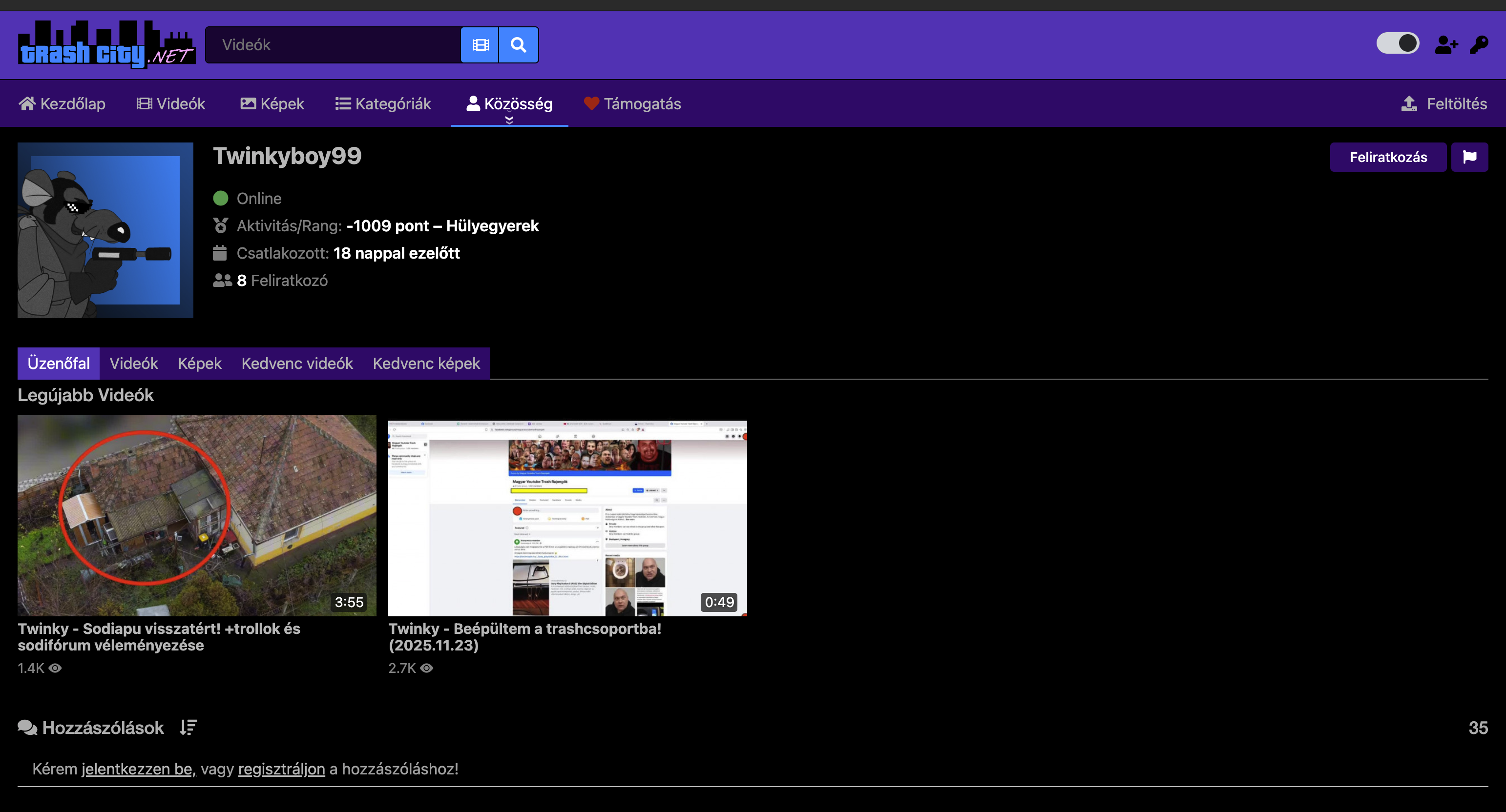 Ez is kb 0-24 órában nézi a trashcity-t, nincs más dolga