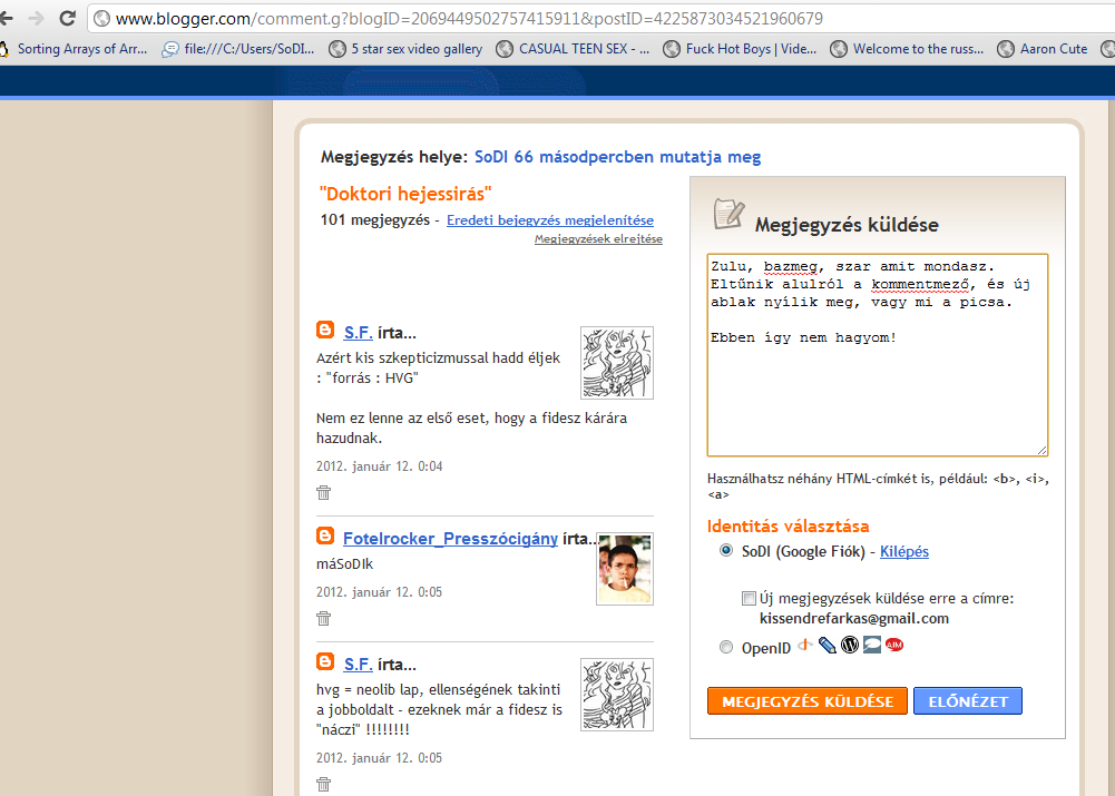Te is tudod, hogy te töltötted fel a buzivideómegsoztóra, és te is tudod, hogy több tucat videós playlisted volt ott. Hogy a goldengate-re is felraktad-e, azt nem tudom.